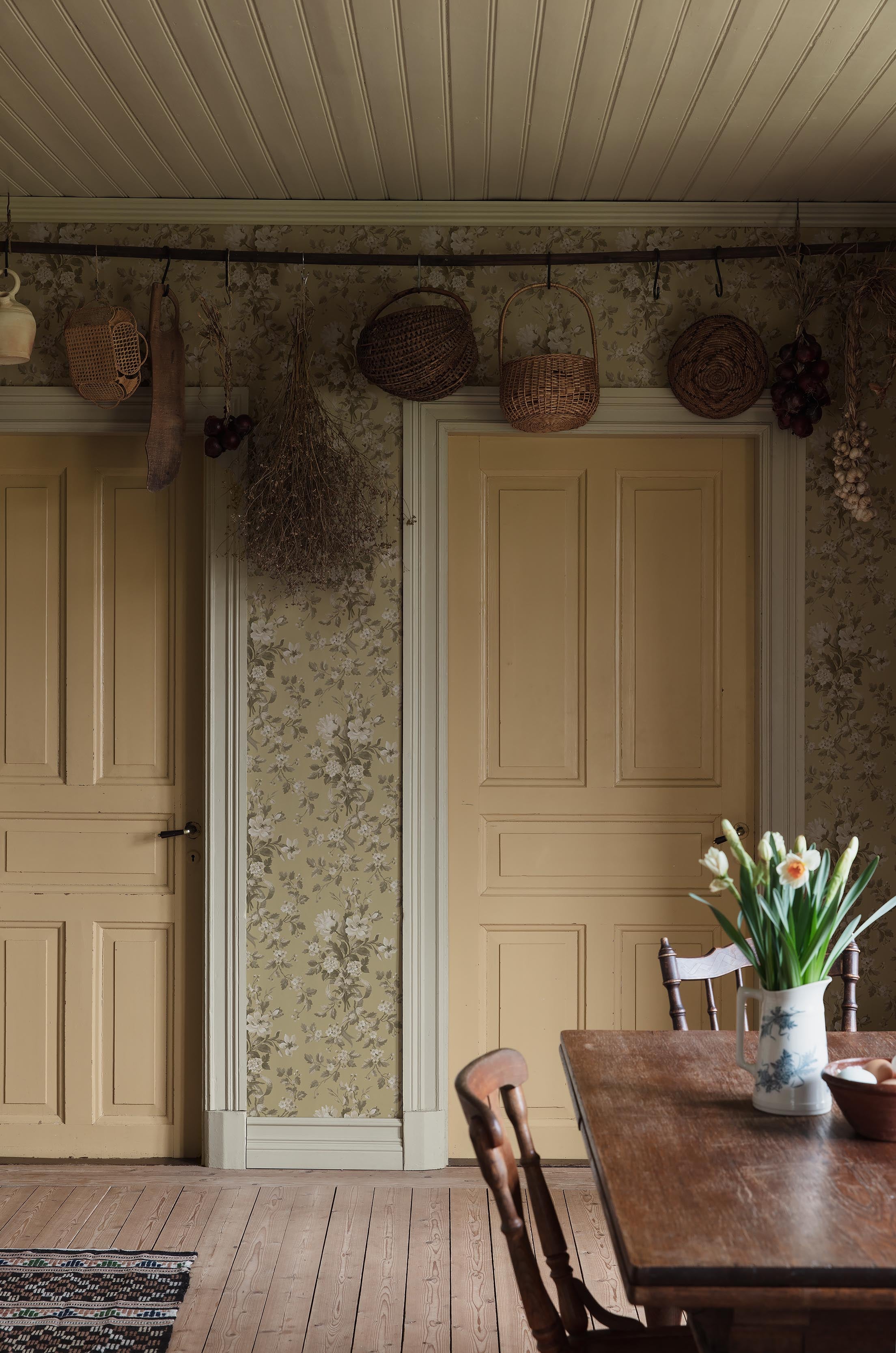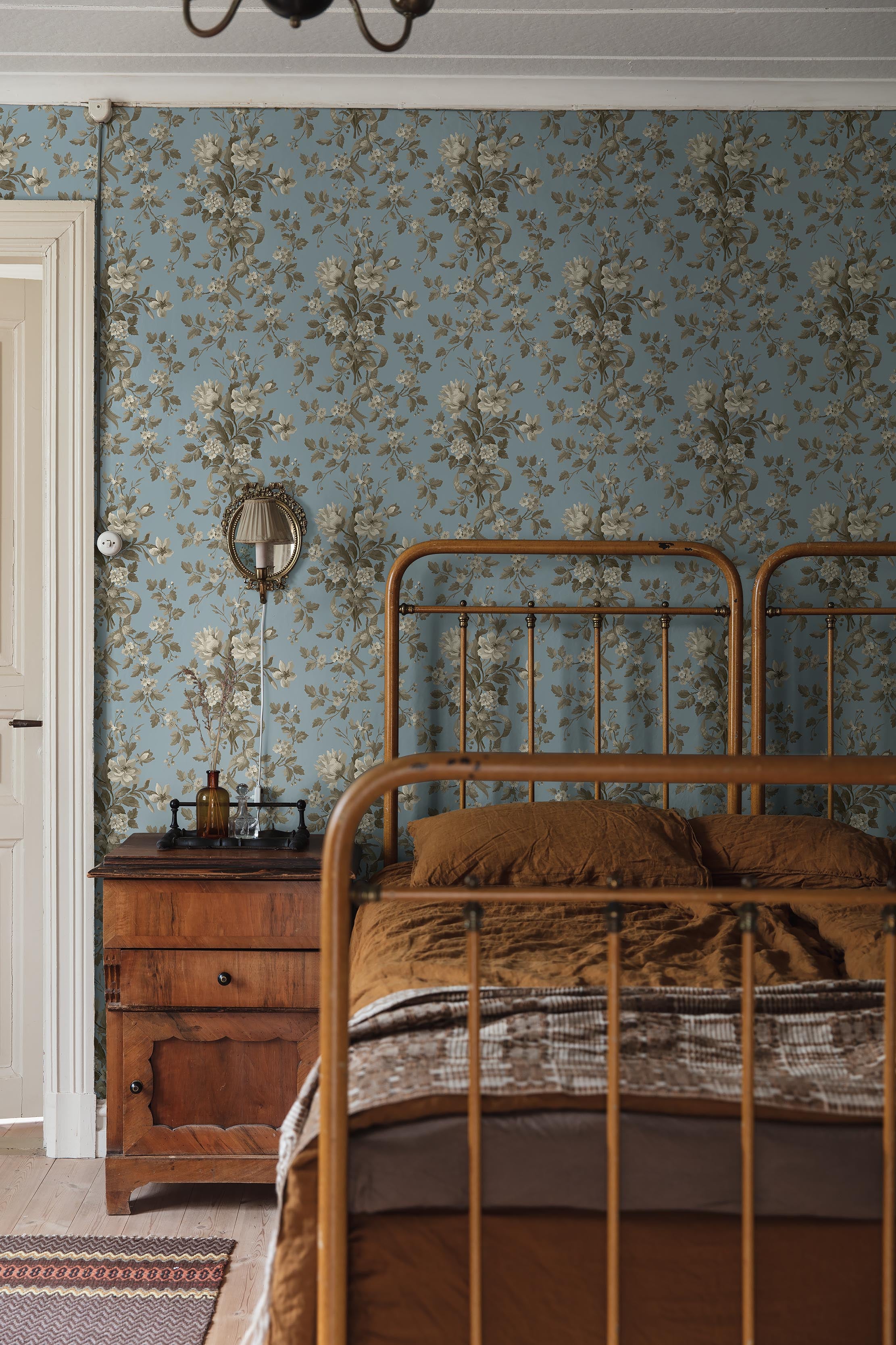 Kring sekelskiftet 1900 kom även den engelska Arts and Crafts-rörelsen till Sverige. Du har säkert sett pionjären William Morris botaniska mönster? 1800-talets pampiga växtornament ersattes av smäckra, slingrande växtformer i symmetriska mönster, ofta med inspiration från vår nordiska flora. Lilja, iris, vallmo, näckros och pion prydde många sekelskiftestapeter i svenska hem.